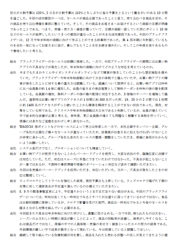 イオンリテール㈱中央労使協議会2021年11月29日実施